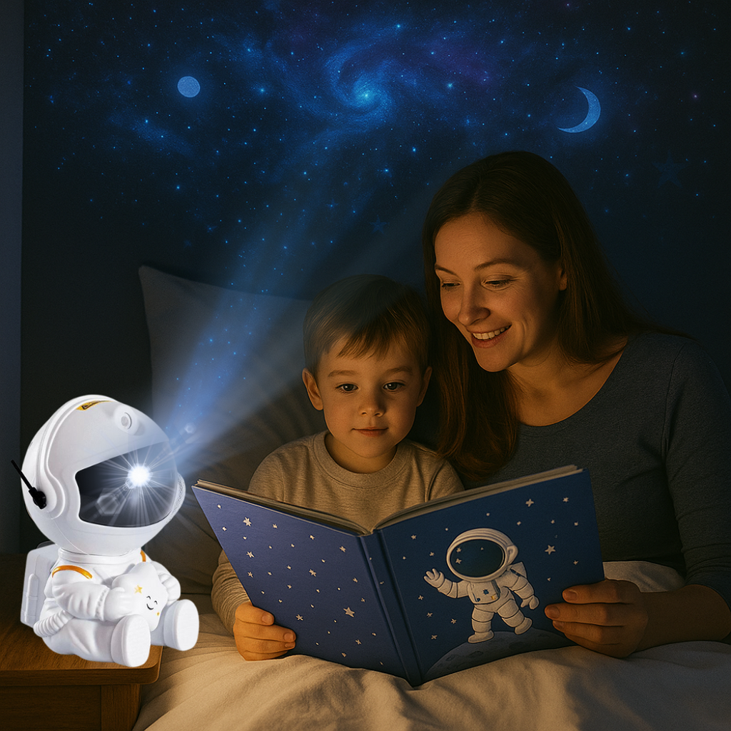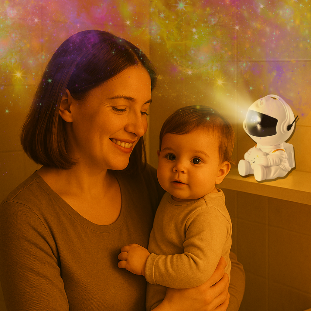 A gente entende. E foi pensando em mães como você que surgiu o Projetor Astronauta Estelar — uma luz noturna encantadora que acalma, relaxa e transforma o quarto do seu filho em um céu estrelado de sonhos.
